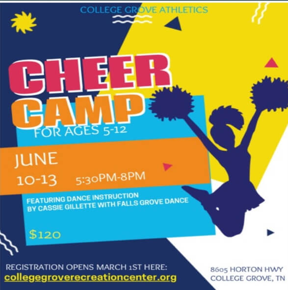 We are excited to be joining the College Grove Athletic Association. Girls will learn stunting and jumps as well as cheer style dance moves. There will be a performance at the end!